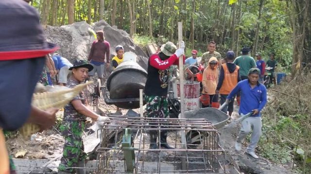 Medan Sulit Lokasi Pembangunan Jembatan Perintis Garuda di Ponorogo, TNI dan Rakyat Tetap Semangat Bekerja