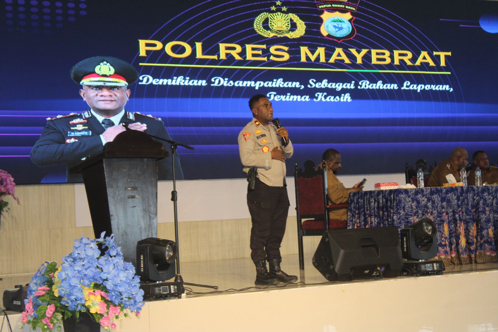 Dalam sesi paparan, Kapolres Maybrat Kompol Ruben Obed Kbarek, S.I.K. menyampaikan kesiapan Polres Maybrat dalam mendukung penuh pelaksanaan HUT RI yang akan dipusatkan di Alun-alun Faitmayaf, serta komitmen dalam menjaga situasi keamanan dan ketertiban masyarakat.