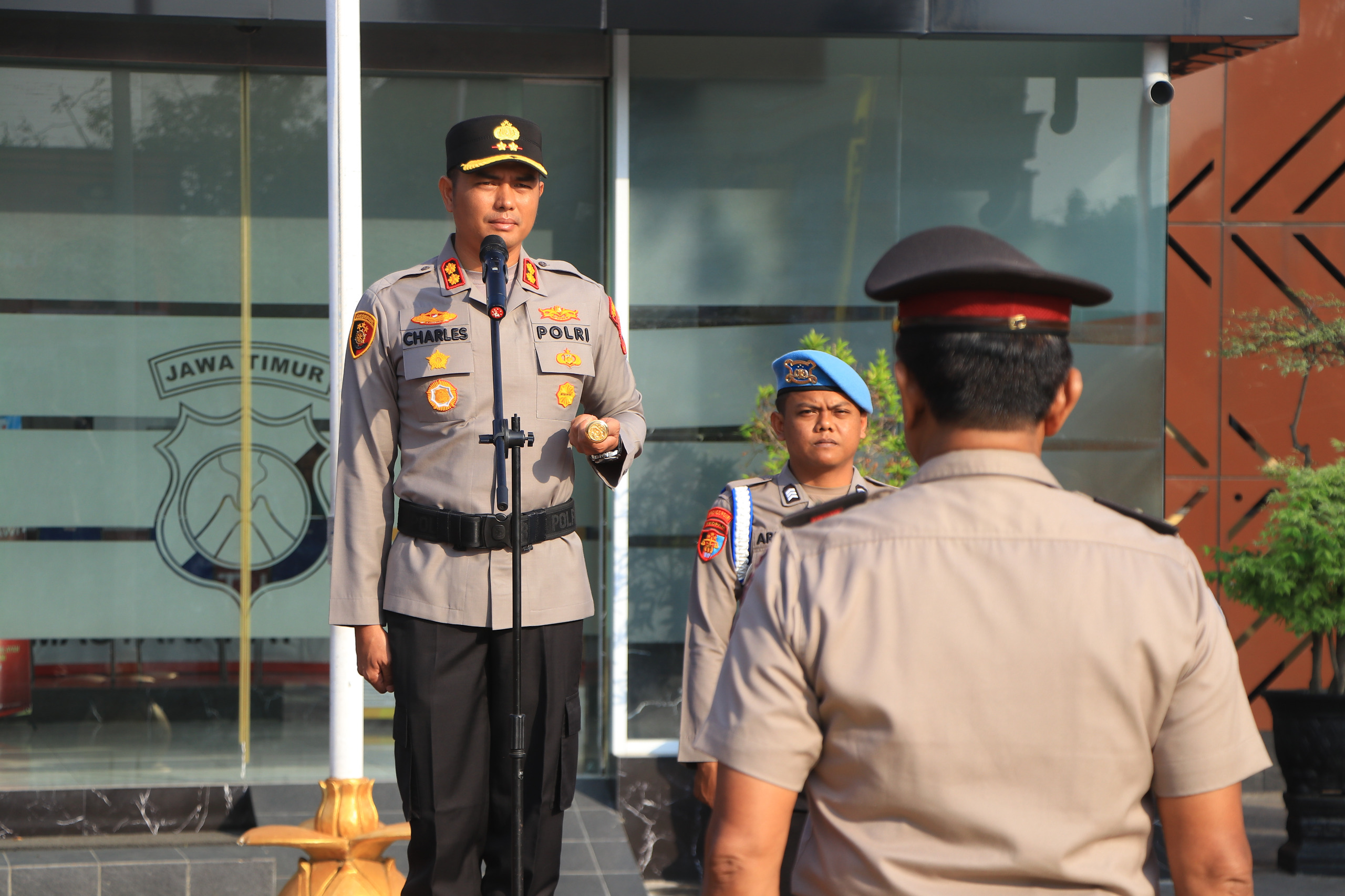 Dalam amanatnya, Kapolres Ngawi menyampaikan rasa bangga dan apresiasi yang tinggi kepada anggota yang menerima kenaikan pangkat pengabdian.
