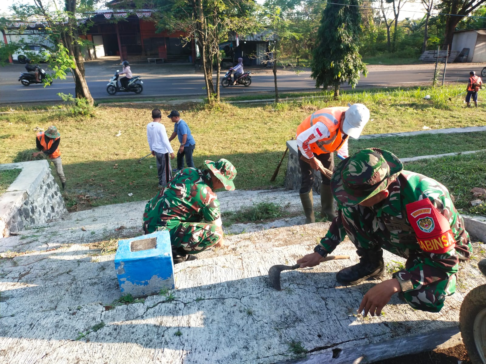 Majalengka – Dalam rangka menjaga kebersihan lingkungan sekaligus mempererat semangat gotong royong, anggota Koramil 1716/Dawuan dan Koramil 1717/Kadipaten menggelar kegiatan Giat Geber Jum’at (Gerakan Bersih-Bersih) di Taman Makam Pahlawan (TMP) Sawalah, Desa Cipaku, Kecamatan Kadipaten, Kabupaten Majalengka, pada Jumat (15/8/2025).