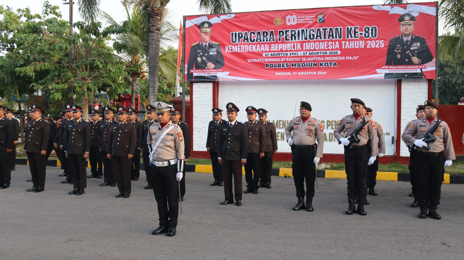 KOTA MADIUN, BUSERJATIM. COM GROUP — Dalam nuansa penuh semangat nasionalisme, Wakil Kepala Kepolisian Resor (Wakapolres) Madiun Kota, Kompol Dr.I Gusti Agung Ananta,.SH,.SIK,.MH, memimpin langsung upacara peringatan Hari Ulang Tahun ke-80 Kemerdekaan Republik Indonesia yang digelar di halaman Mapolres Madiun Kota, Minggu pagi (17/8).