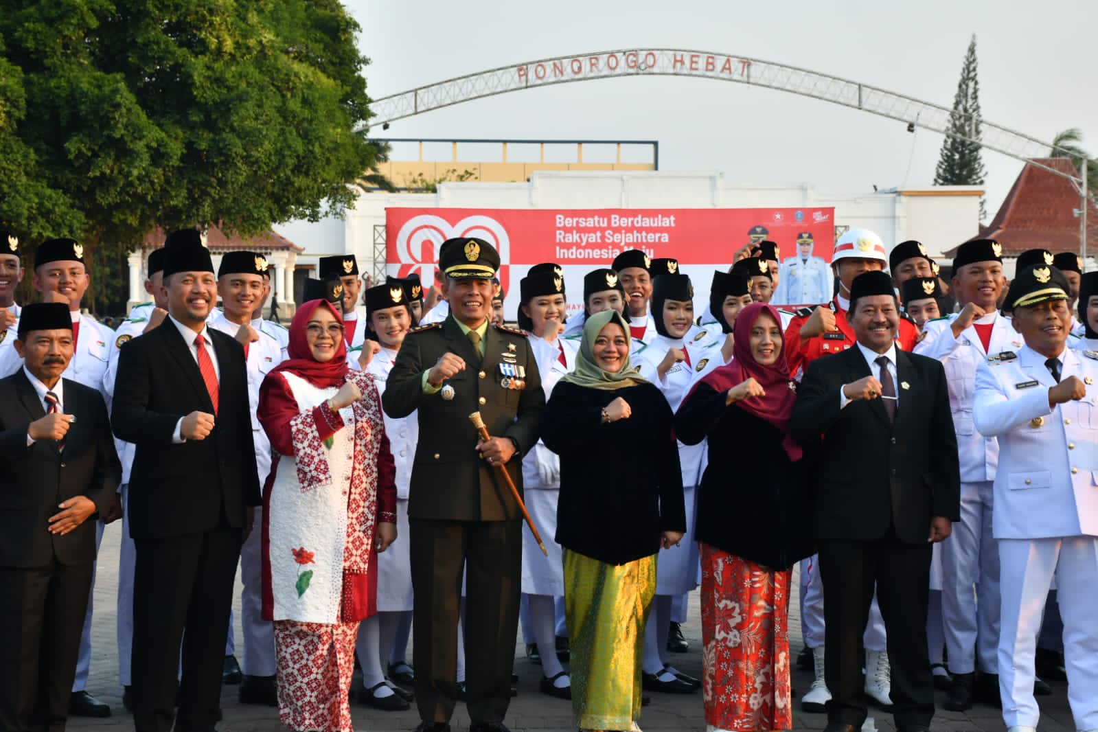 Upacara digelar di Aloon – Aloon Kota / Kabupaten Ponorogo bertindak selaku Inspektur Upacara (Irup) adalah Bupati Ponorogo H. Sugiri Sancoko., SE., MM. dan dihadiri Forkopimda Ponorogo serta undangan dari berbagai instansi dan elemen masyarakat.
