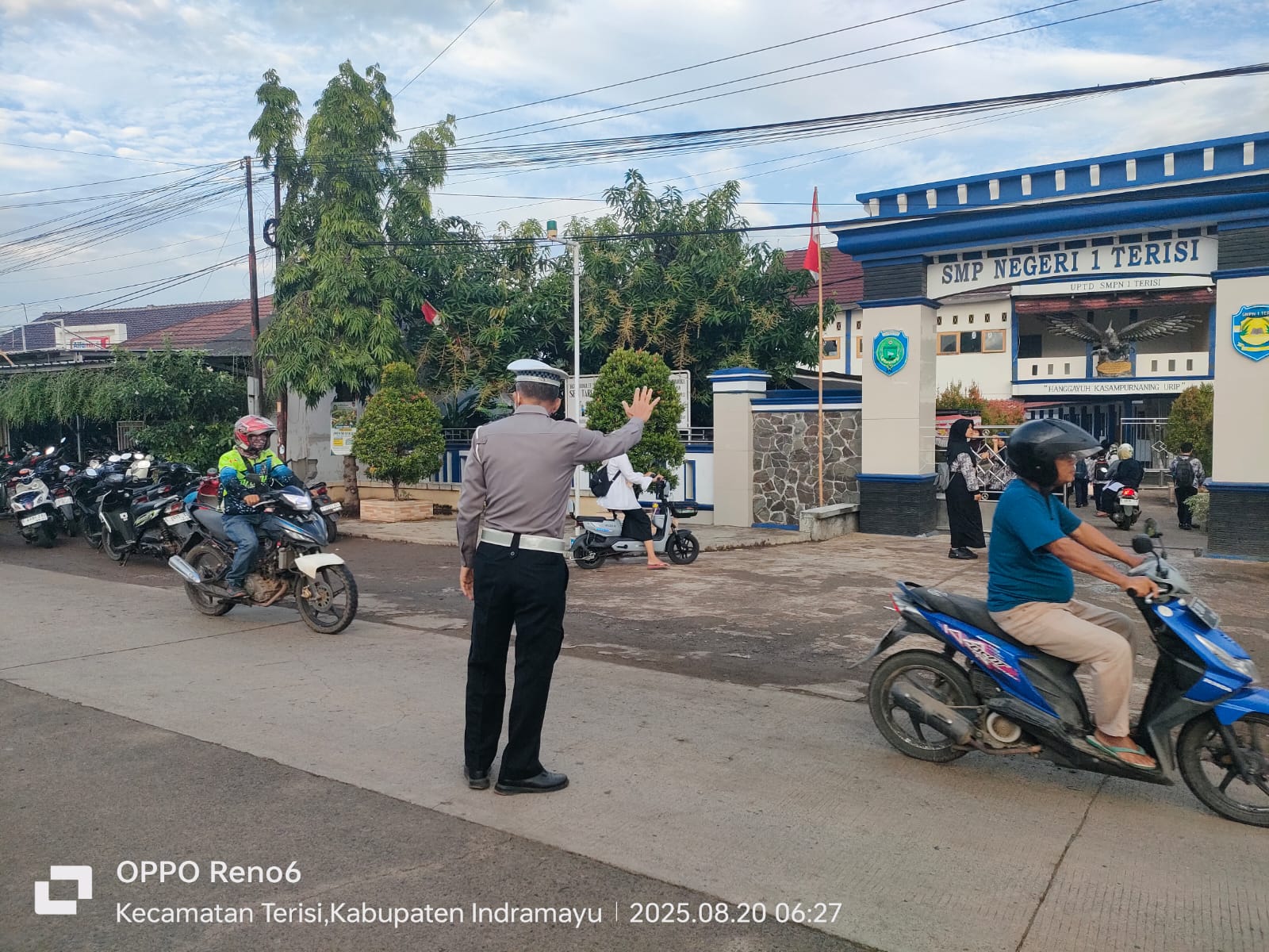 Indramayu,- Kanit Lantas Polsek Terisi jajaran Polres Indramayu Polda Jabar dalam mengatur arus lalu lintas di titik-titik rawan laka di Sekolah yang ada di wilayah Hukum Polsek Terisi, Kabupaten Indramayu, Rabu (20/8/2025) Pukul 05.50 WIB s/d selesai.