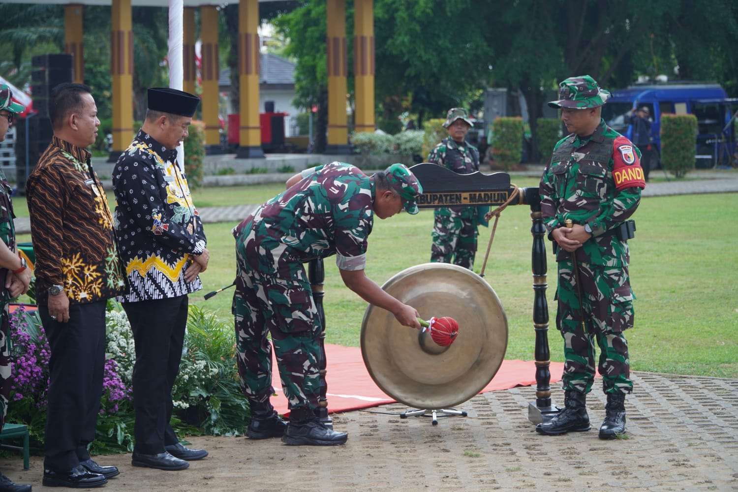 Danrem 081/Dhirotsaha Jaya, Kolonel Arm Untoro Hariyanto, bertindak sebagai inspektur upacara sekaligus menutup secara resmi rangkaian TMMD.