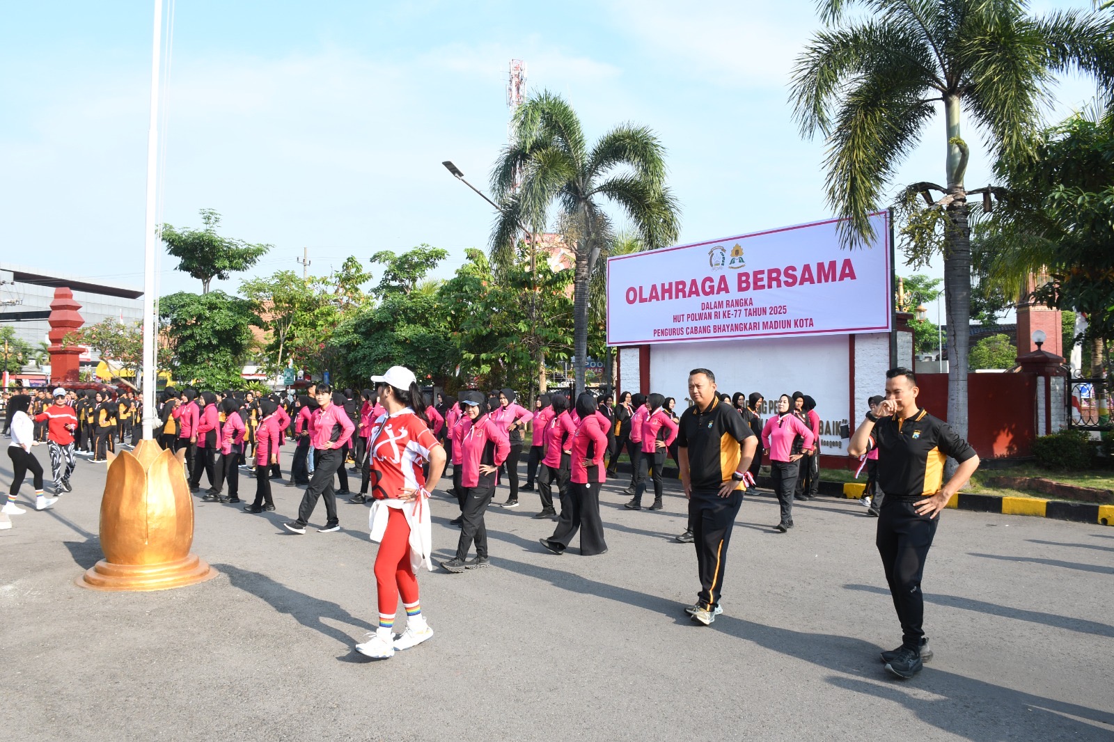 Kota Madiun,BUSERJATIM.COM GROUP– Dalam rangka menyambut Hari Ulang Tahun (HUT) Polisi Wanita (Polwan) ke-77, Polres Madiun Kota menggelar kegiatan olahraga bersama yang melibatkan seluruh personel, Polwan dan Bhayangkari Cabang Madiun Kota, Jumat (22/8/2025) pagi.