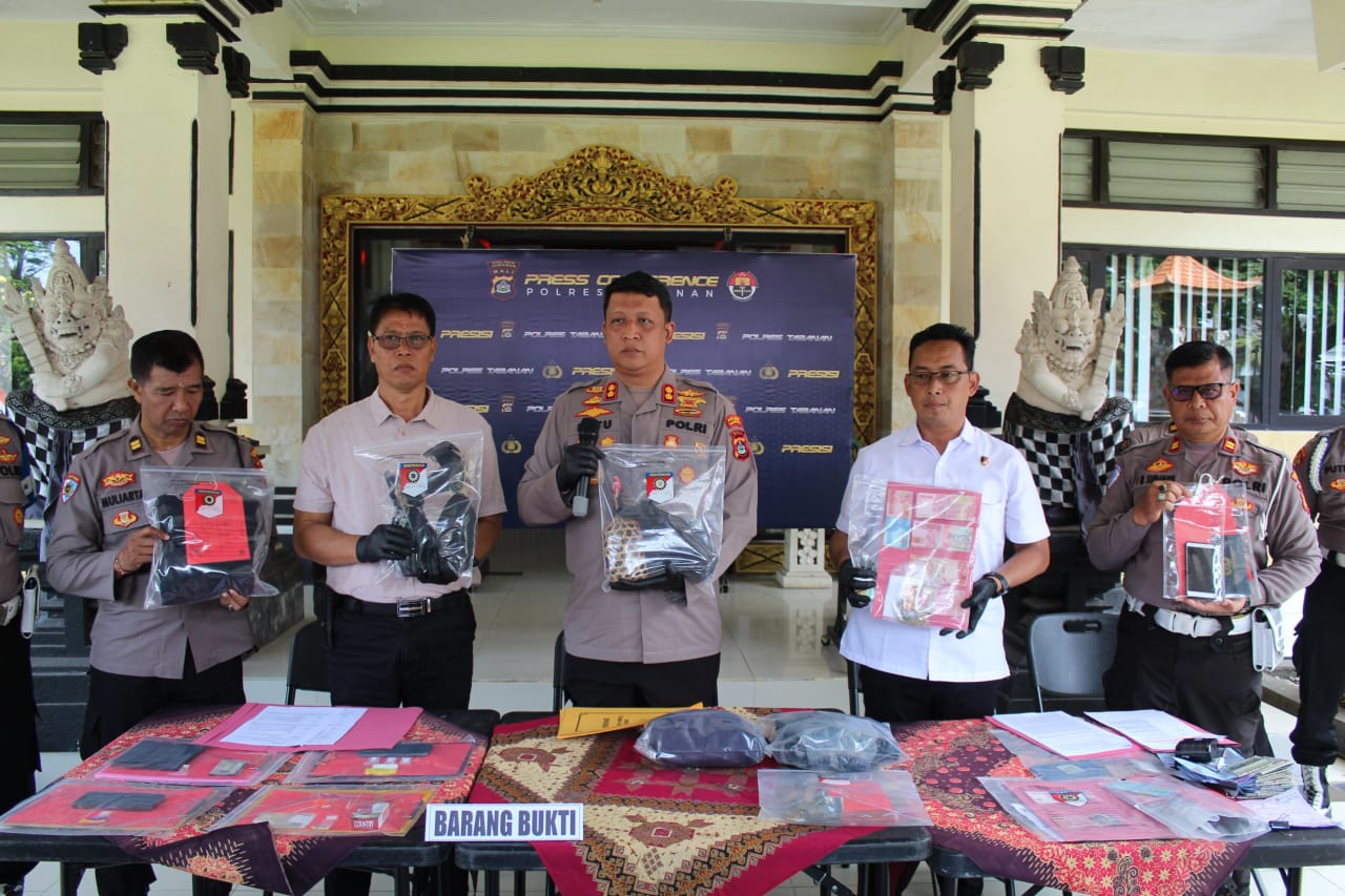 Tabanan – Polres Tabanan melalui Sat Reskrim berhasil mengungkap enam kasus kriminal menonjol di wilayah hukumnya. Hal ini disampaikan dalam Press Conference yang digelar pada Jumat (22/8/2025) di Lobi Polres Tabanan, dipimpin langsung oleh Kapolres Tabanan AKBP I Putu Bayu Pati, S.I.K., M.H. Kegiatan turut dihadiri para pejabat utama Polres Tabanan, personel Sat Reskrim, Sat Narkoba, Humas, serta para awak media.