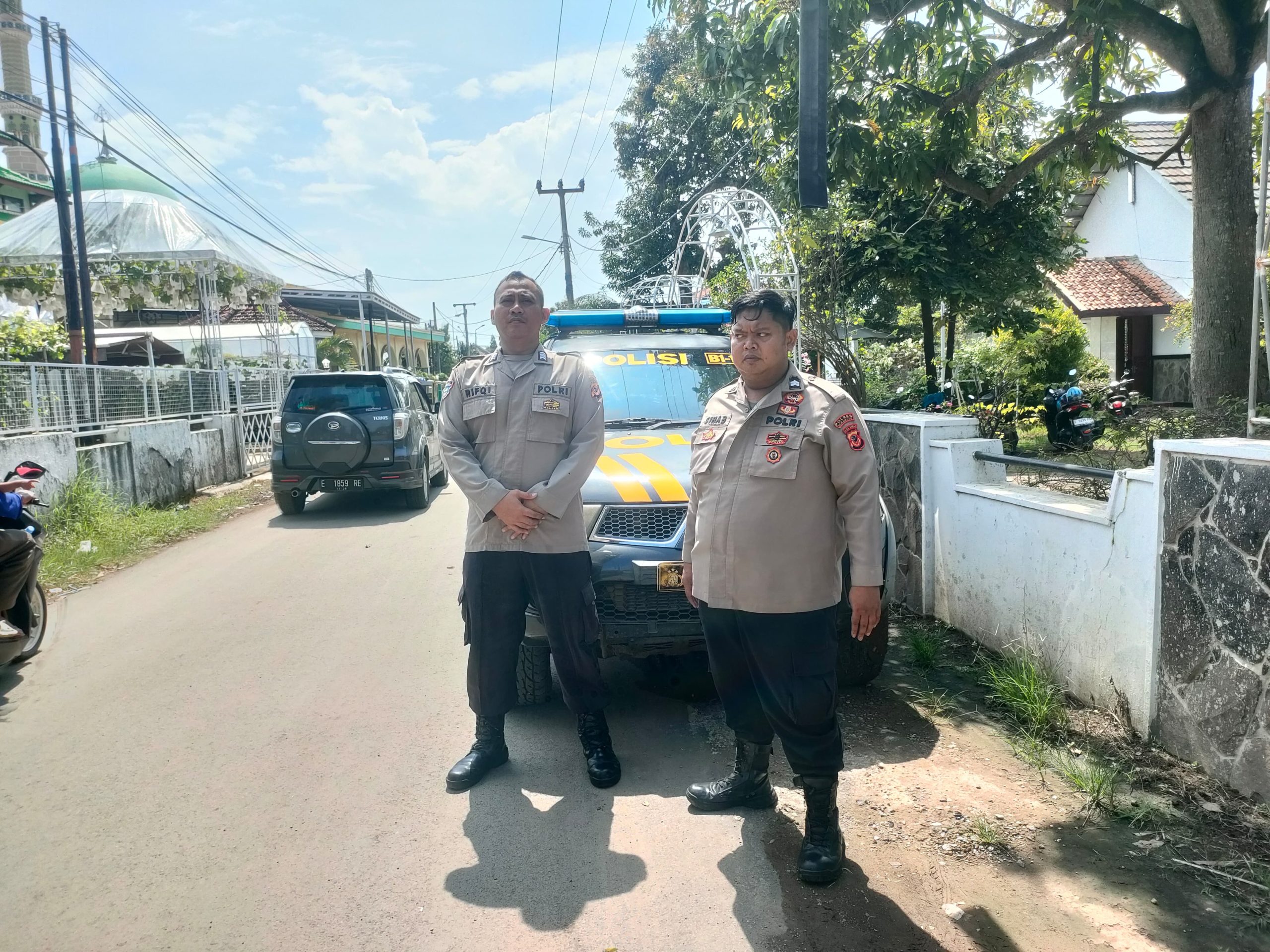 Indramayu —, Personel Polsek Juntinyuat Polres Indramayu Polda Jabar tampak melakukan patroli di ruas jalan pemukiman dan sekitar rumah ibadah, di wilayah hukum Polsek Juntinyuat, Minggu (24/8/2025)
