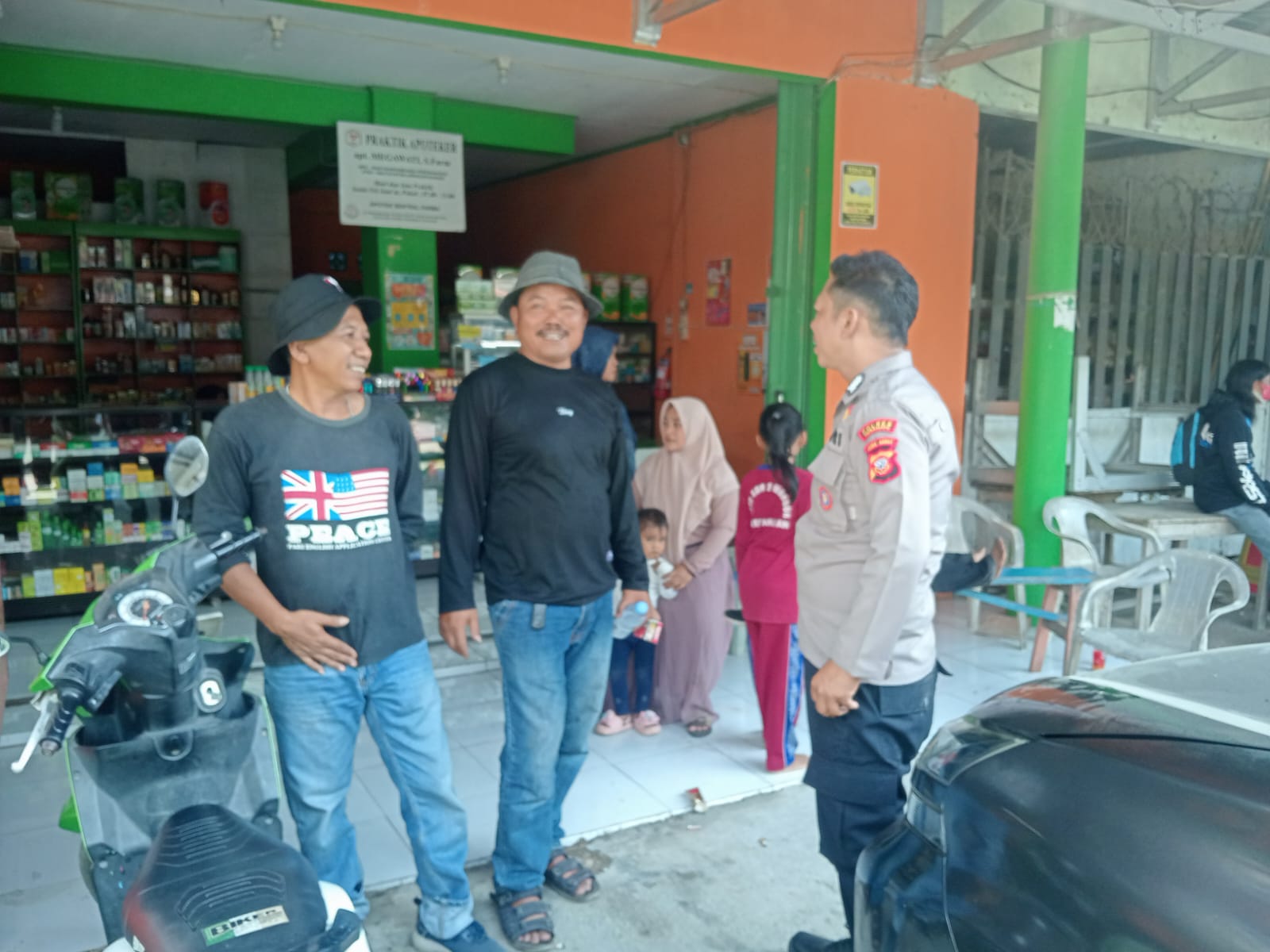 Patroli bukan hanya keliling, tapi juga sesekali berhenti di lokasi titik kumpul warga.