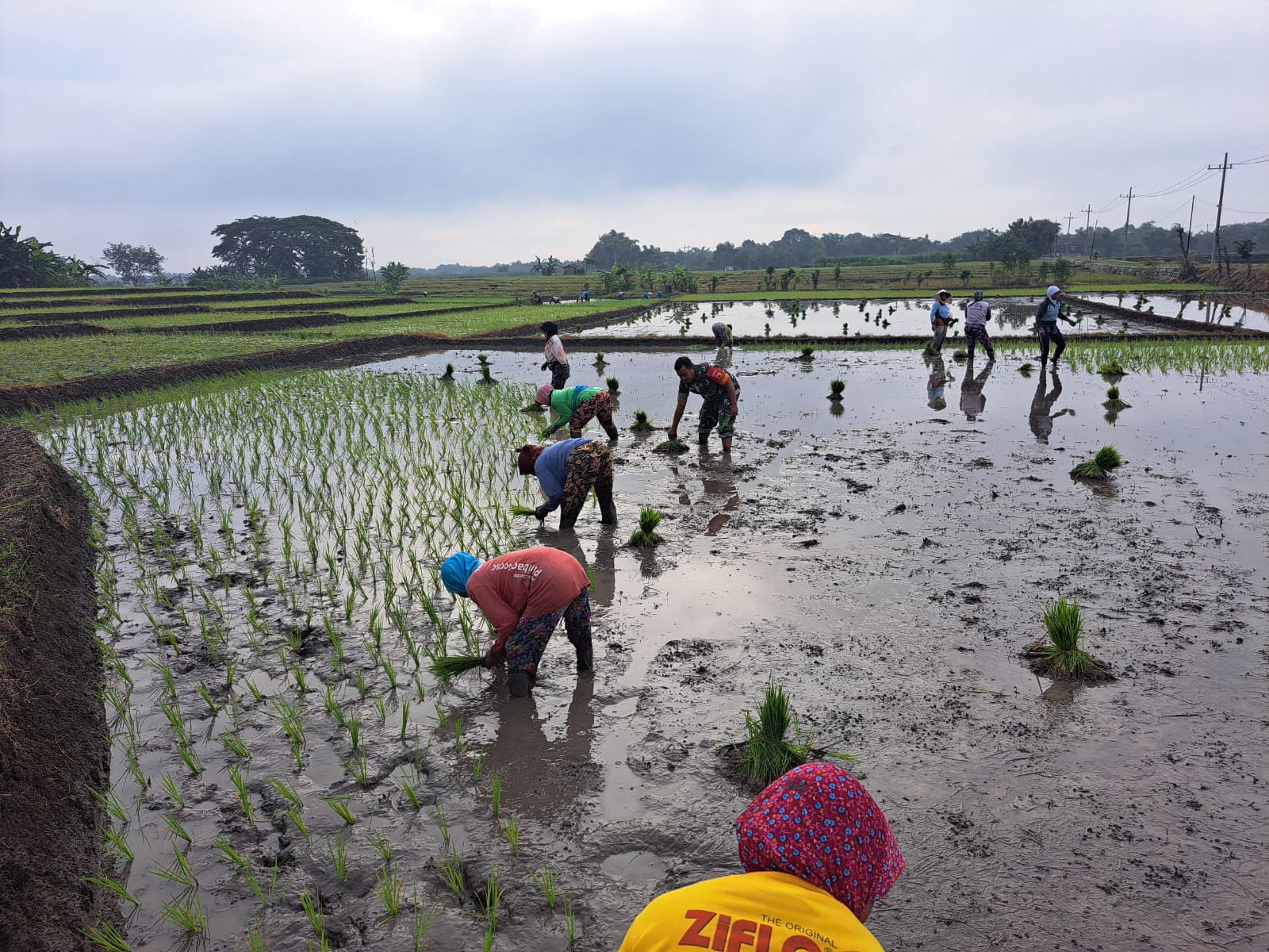 NGAWI, BUSERJATIM.COM GROUP – Babinsa Simo Koramil 0805/09 Kendal Kodim 0805/Ngawi Serda Ipik Setiono membantu Petani tanam padi di Sawah milik Sdr. Sutoyo Dsn. Simo Desa Simo Kec. Kendal, Jum’at (05/09/2025).