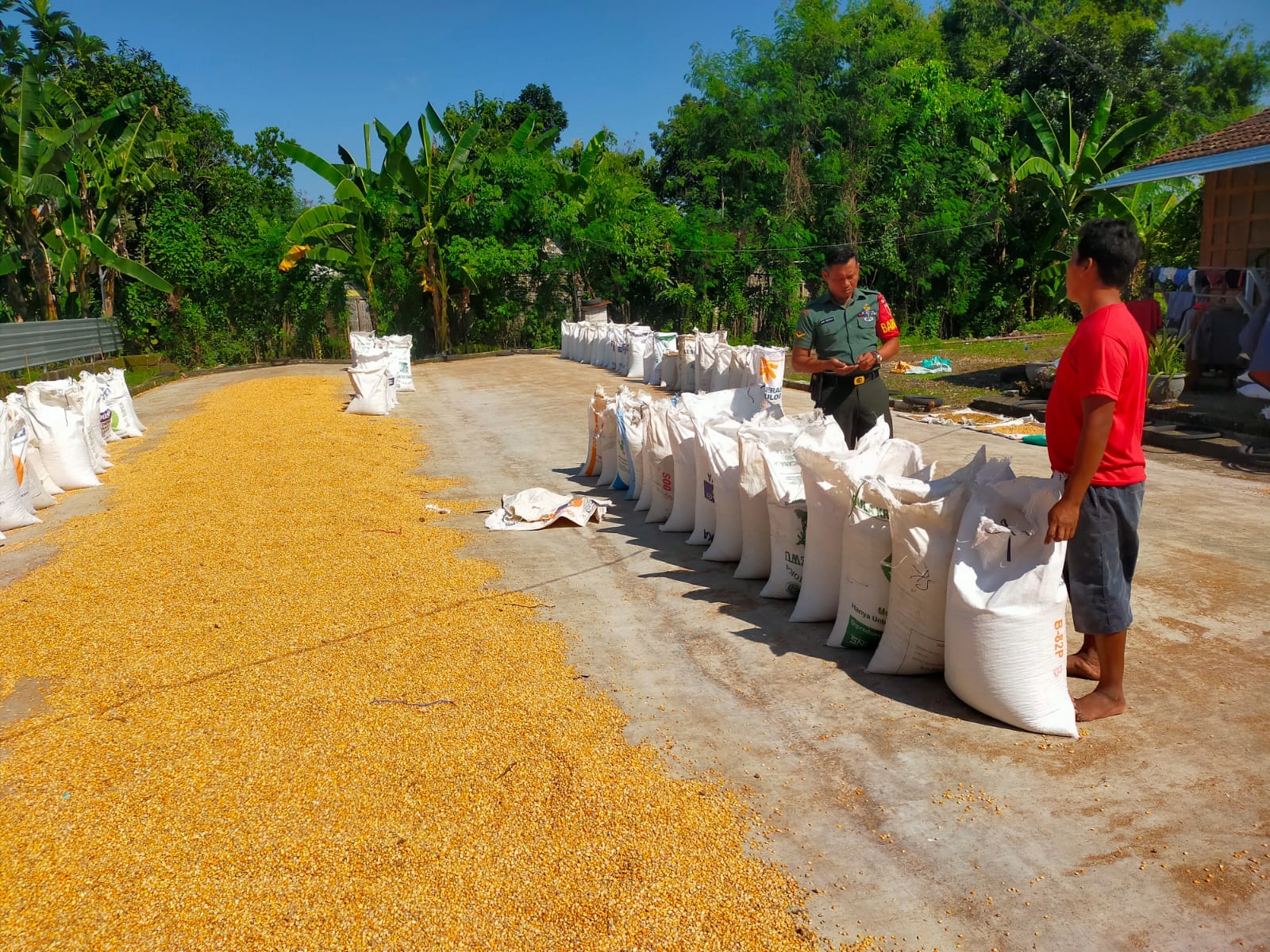 Dalam pendampingan itu, Babinsa bersama bapak Agus menjemur hasil panen jagung yang sudah di giling dan selanjutnya siap di jual ke tengkulak dengan hasil maksimal sesuai dengan yang diharapkan saat ini.