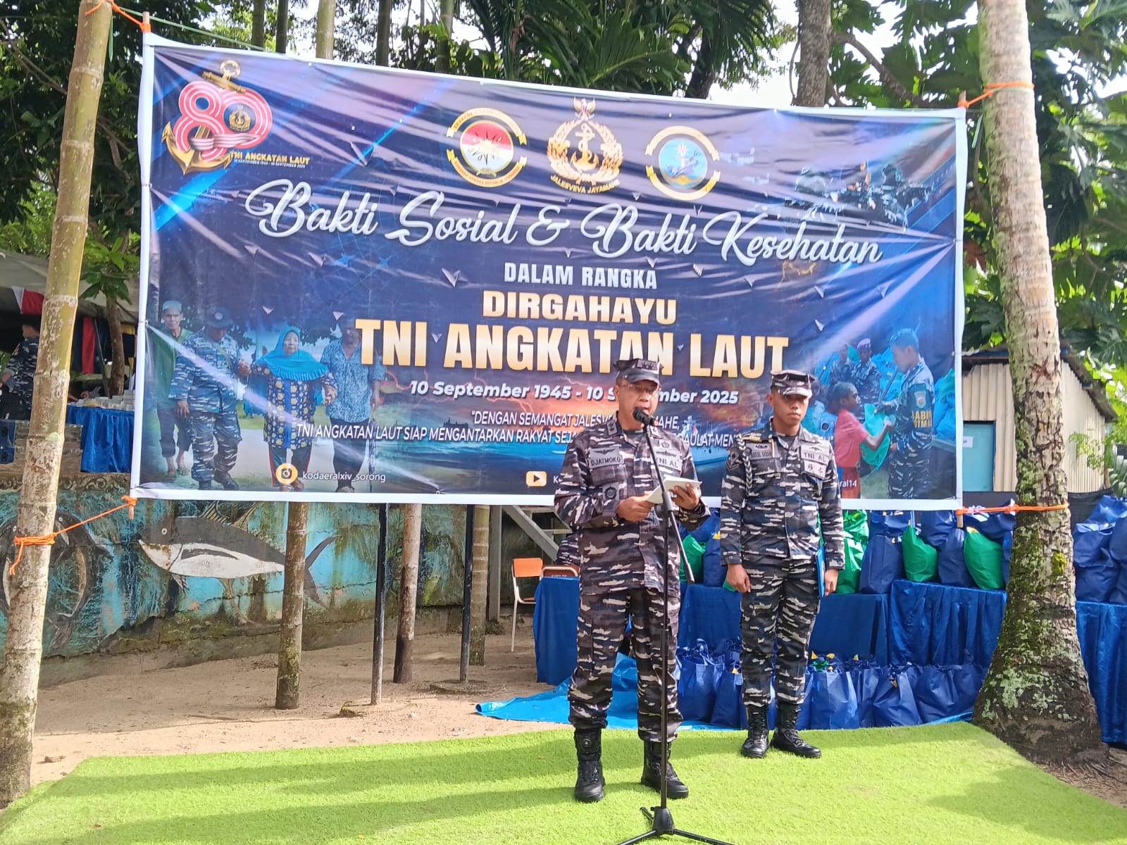 KOTA SORONG PBD, BUSERJATIM.COM GROUP – Dalam rangka memperingati HUT TNI AL ke-80 tahun 2025, Komando Daerah Angkatan Laut (KODAERAL) XIV menggelar kegiatan Bakti Sosial (Baksos) di Kelurahan Tanjung Kasuari, Kota Sorong provinsi Papua Barat daya, Senin (7/9/25). Kegiatan ini menjadi wujud nyata kepedulian dan pembinaan TNI AL terhadap masyarakat pesisir yang menjadi wilayah binaannya.