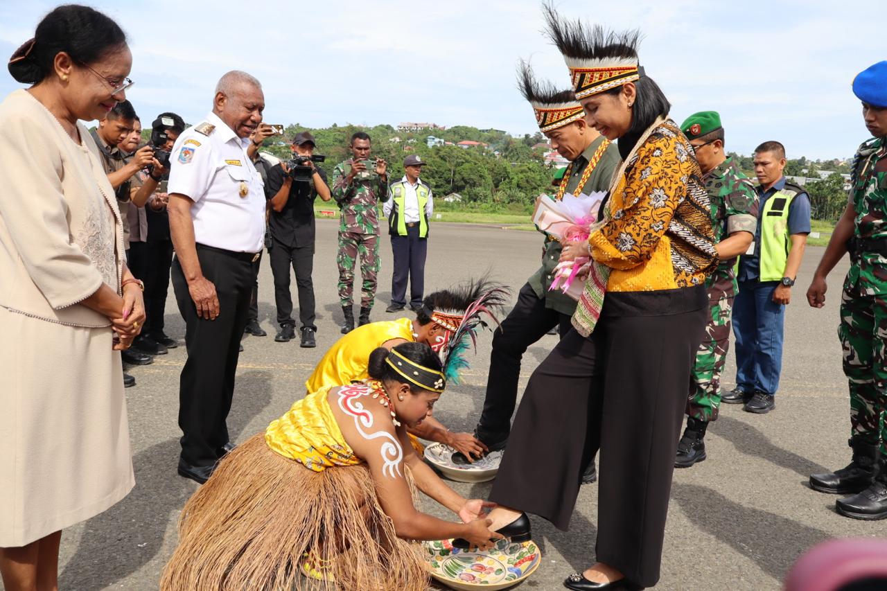 Setibanya di Bumi Kasuari dengan menumpangi pesawat Batik Air ID 6154, Pangdam dan Ketua Persit langsung disambut secara adat, sebuah penghormatan istimewa dari masyarakat Papua Barat. Prosesi adat injak piring, pengalungan bunga, serta tarian tradisional Papua menjadi penanda dimulainya pengabdian baru sang jenderal di wilayah yang kaya akan sejarah, budaya, dan potensi alam ini.