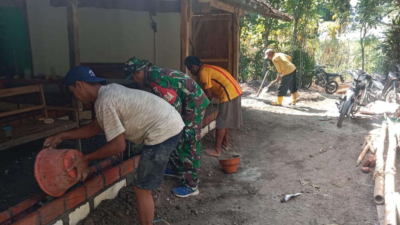 MADIUN, BUSERJATIM.COM GROUP – Babinsa Desa Bulu, Serma Mulyono, bersama warga bergotong royong melaksanakan kerja bhakti membantu pengecoran pondasi rumah milik salah satu warga di RT 14/RW 02 Desa Bulu, Kecamatan Pilangkenceng, Kabupaten Madiun.