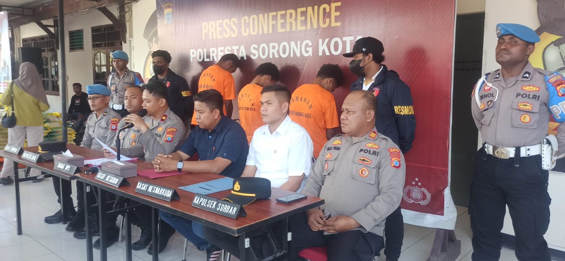 Konferensi pers tersebut dipimpin langsung oleh Kabag Ops Polresta Sorong Kota, Kompol H. Muhamad Andi Nurul Yaqin, S.IK, mewakili Kapolresta Kombes Pol Amry Siahaan, S.IK, MH. Hadir pula Kasat Reskrim AKP Afrianga U. Tan, S.Tr.K, S.IK dan Kasat Narkoba AKP Rachmat Djakarta, S.IK, S.Tr.K, M.Si.