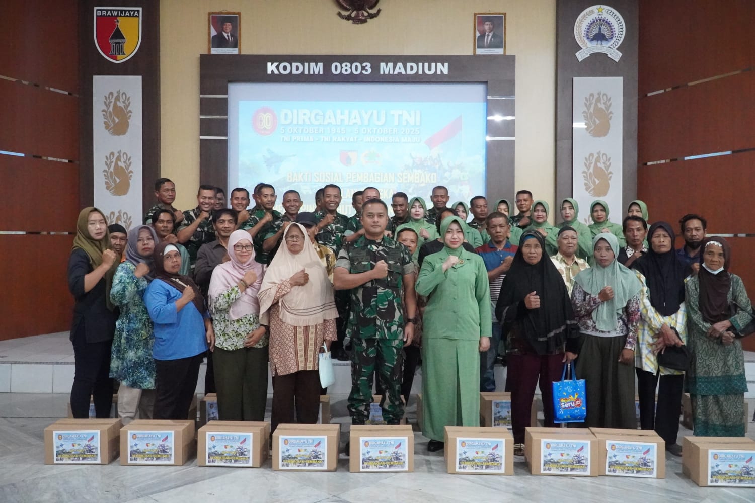 Kegiatan sosial ini dipimpin langsung oleh Dandim 0803/Madiun, Letkol Kav Widhi Bayu Sudibyo, didampingi Ketua Persit Kartika Chandra Kirana Cabang XVII Kodim 0803/Madiun, Ibu Ika Widhi Bayu Sudibyo. Dalam kesempatan tersebut, ratusan paket sembako disalurkan kepada masyarakat yang membutuhkan di wilayah Kota dan Kabupaten Madiun.
