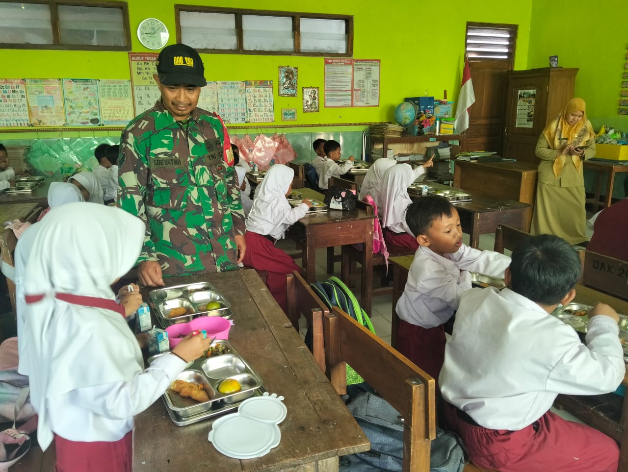 Dukung Generasi Sehat dan Cerdas, Babinsa Kendal Dampingi Kegiatan Program MBG Di Wilayah Binaannya