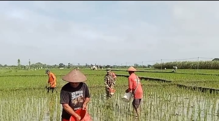 NGAWI, BUSERJATIM.COM GROUP – Babinsa Posramil 0805/17 Pitu Kodim 0805/Ngawi Serka Alip membantu Petani dalam pemupukan tanaman padi di Sawah milik Sdr.Warjono Dsn.Ngedong Desa Papungan Kec.Pitu, Selasa (23/09/2025).