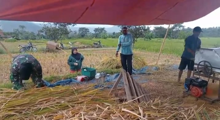 Seperti hari ini dilakukan oleh Serka Yudik D Setiawan anggota Koramil Tipe C 0802/18 Sooko, Kodim 08902/Ponorogo yang membantu petani di Dukuh Puru Desa Bedoho Kecamatan Sooko Kabupaten Ponorogo yang sedang memanen padi di lahan pribadi.