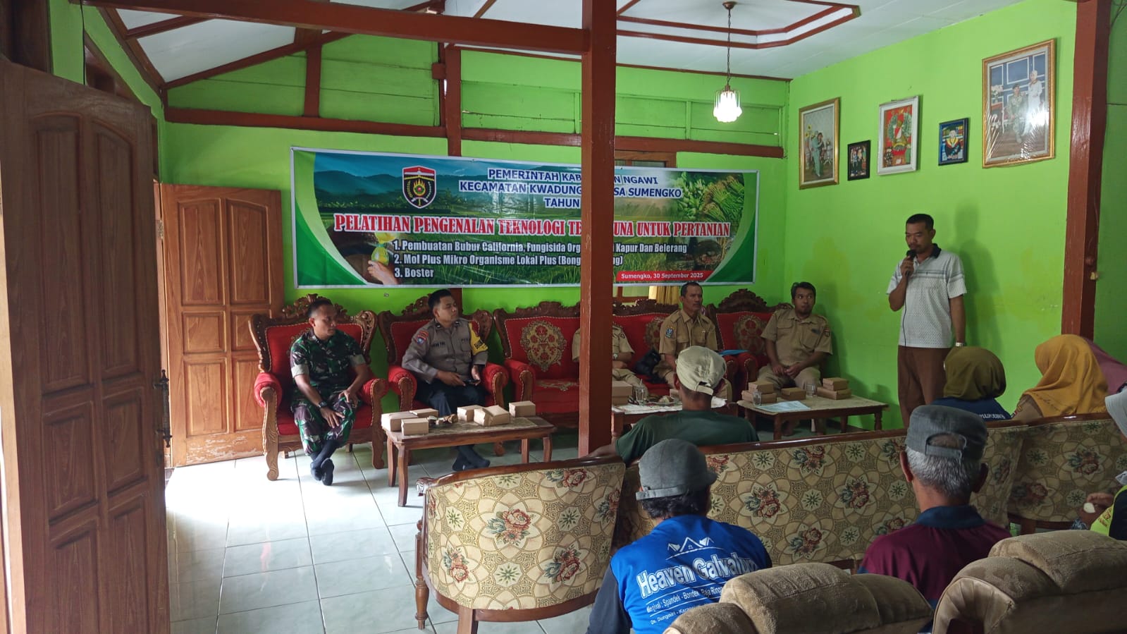 NGAWI, BUSERJATIM.COM GROUP – Dalam rangka mendukung pertanian ramah lingkungan, Babinsa Koramil Kwadungan Kodim 0805/Ngawi, Sertu Rudi Yudo, turut ambil bagian dalam kegiatan pelatihan pertanian dan pemberdayaan masyarakat desa yang digelar di Desa Sumengko,Kecamatan Kwadungan, Kabupaten Ngawi. Kamis (02/10/2025).