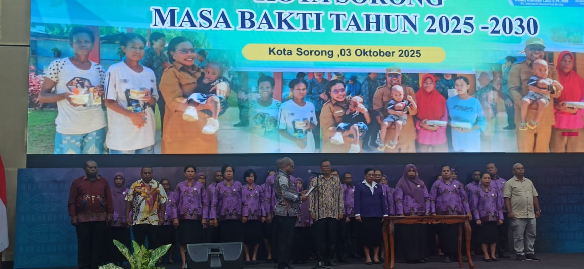 KOTA SORONG PBD, BUSERJATIM.COM GROUP — Wali Kota Sorong, Septinus Lobat, SH., M.PA, secara resmi melantik Pengurus Tim Pembinaan Posyandu Tingkat Kota Sorong (TPP Sorong) dalam sebuah upacara khidmat yang digelar di Gedung Lambertus Jitmau, Kelurahan Remu Utara, Distrik Sorong Kota, Jumat (03/10/2025). Pelantikan ini menjadi momen penting dalam upaya penguatan pelayanan kesehatan dasar di tingkat akar rumput, khususnya dalam pencegahan stunting dan peningkatan gizi masyarakat.