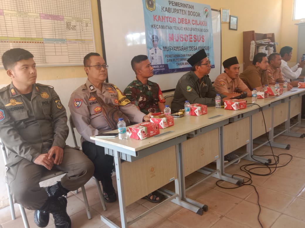 Bogor – Dalam rangka memperkuat sinergitas TNI dan Polri, Polsek Tenjo Polres Bogor melalui Bhabinkamtibmas Aiptu Nanang Suhendar bersama Babinsa Sertu Rouf menghadiri kegiatan Musyawarah Desa Khusus (Musdesus) bersama warga, para ketua RT dan RW, para jaro, kepala dusun, serta tokoh masyarakat di Desa Cilaku, Kecamatan Tenjo, Kabupaten Bogor, pada Senin (06/10/2025).