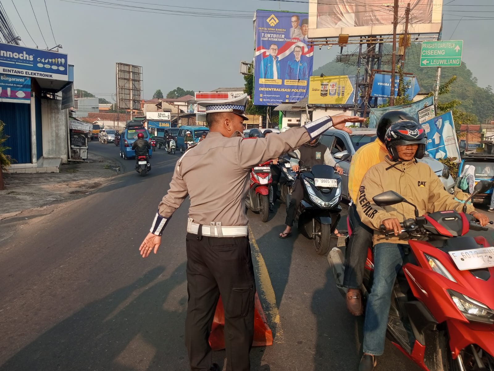 Bogor – Dalam rangka memberikan pelayanan terbaik kepada masyarakat, anggota Unit Lantas Polsek Ciampea Polres Bogor melaksanakan kegiatan pengaturan lalu lintas di sejumlah titik rawan kemacetan pada Rabu (8/10/2025) pagi. Kegiatan ini dilakukan untuk memastikan arus lalu lintas berjalan lancar serta terciptanya situasi Keamanan, Keselamatan, Ketertiban, dan Kelancaran Lalu Lintas (Kamseltibcarlantas).