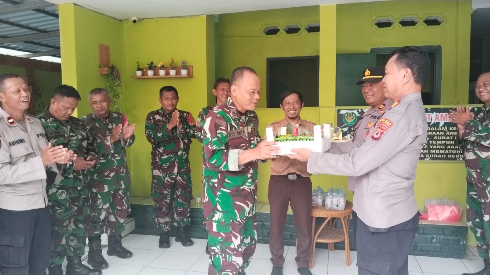 Kegiatan yang berlangsung di Makoramil 1711 Sumberjaya ini disambut hangat oleh Danramil 1711 KAPTEN INF Ibnu Iyus Khajar beserta jajaran. Selain menyampaikan ucapan selamat, Kapolsek dan Camat juga menyerahkan kue ulang tahun dan karangan bunga sebagai simbol persaudaraan dan penghargaan.