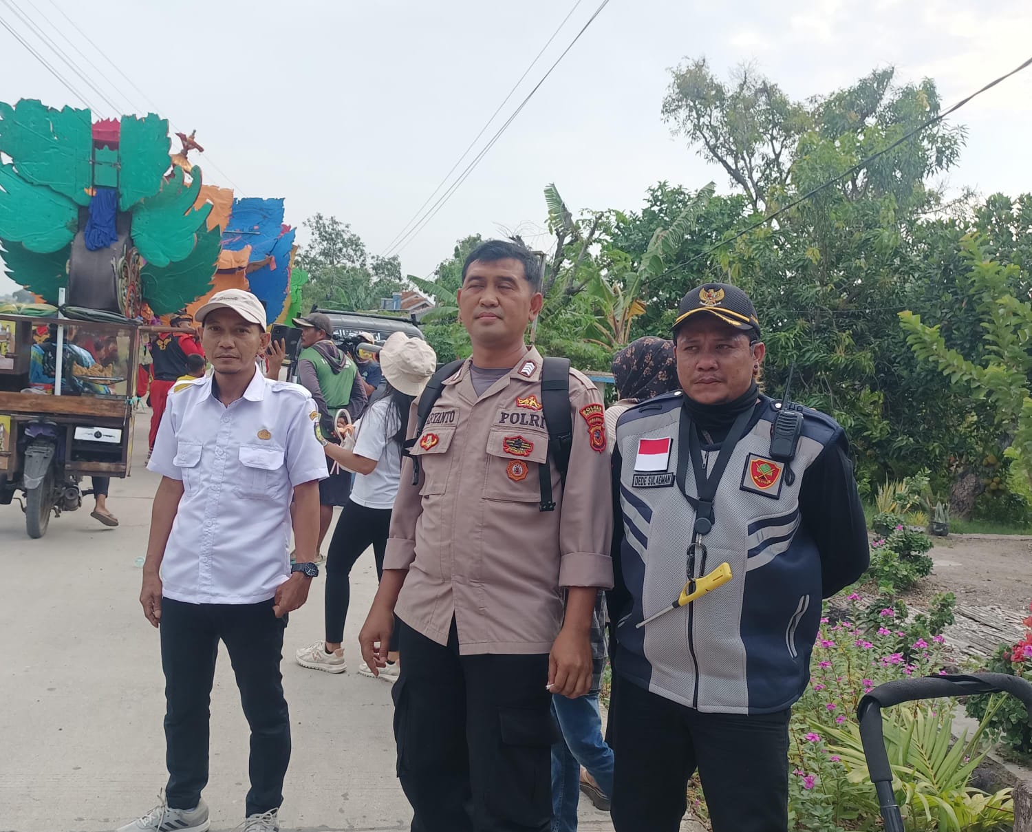 Bhabinkamtibmas Polsek Bongas Gelar Pengamanan Hiburan Arak-Arakan Singa Depok di Desa Sidamulya
