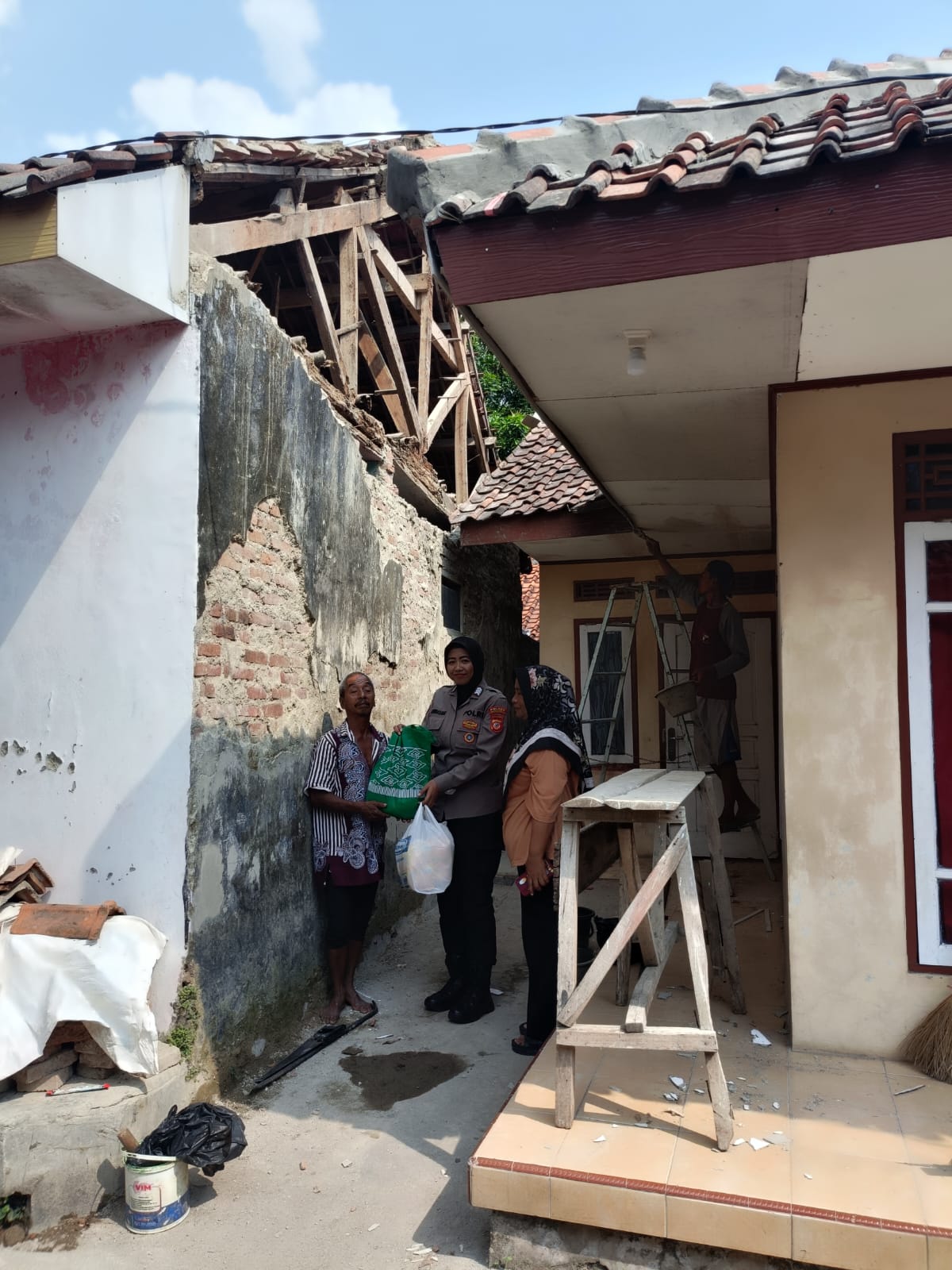 Mengetahui peristiwa tersebut, Brigadir Neng Nurhasanah segera mendatangi lokasi untuk melakukan pengecekan kondisi rumah sekaligus memberikan bantuan sembako sebagai bentuk empati dan dukungan kepada korban.