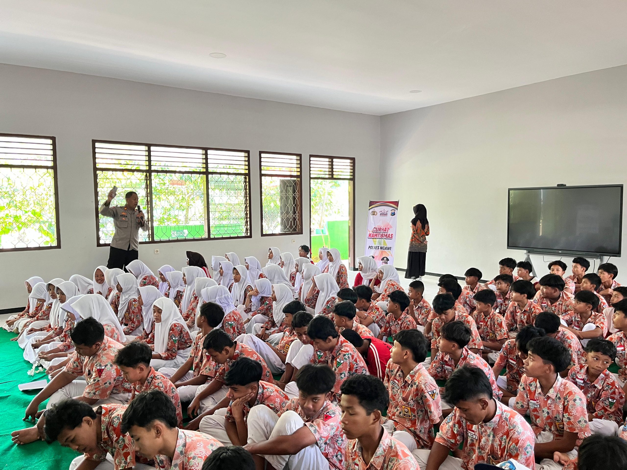 Ngawi – Dalam rangka memberikan pembinaan dan penyuluhan kepada para pelajar, Satuan Binmas Polres Ngawi dipimpin Kasat Binmas AKP Agus Purwanto, S.H., melaksanakan kegiatan “Police Go To School” di SMPN 2 Ngrambe Kab. Ngawi