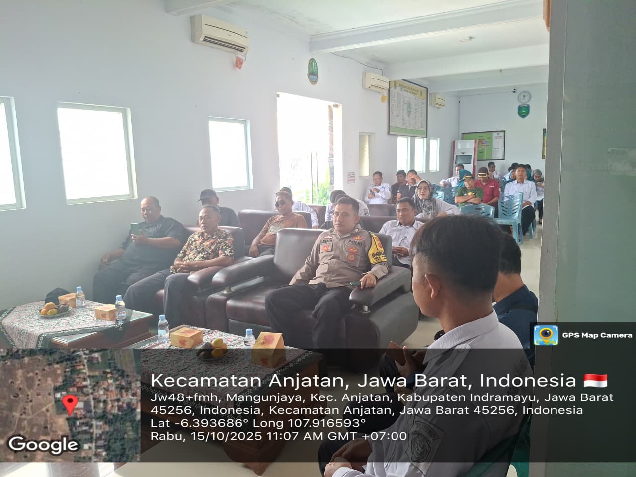 Indramayu – Bhabinkamtibmas Desa Mangunjaya, Polsek Anjatan, Polres Indramayu Polda Jabar, monitoring kegiatan penyampaian informasi pertanggungjawaban realisasi APBDes Semester I Tahun Anggaran 2025 sekaligus Musyawarah Desa (Musdes) Rencana Kerja Pemerintah Desa (RKPDES) Tahun 2026 di Kecamatan Anjatan, Rabu (15/10/2025) pukul 11.00 WIB.