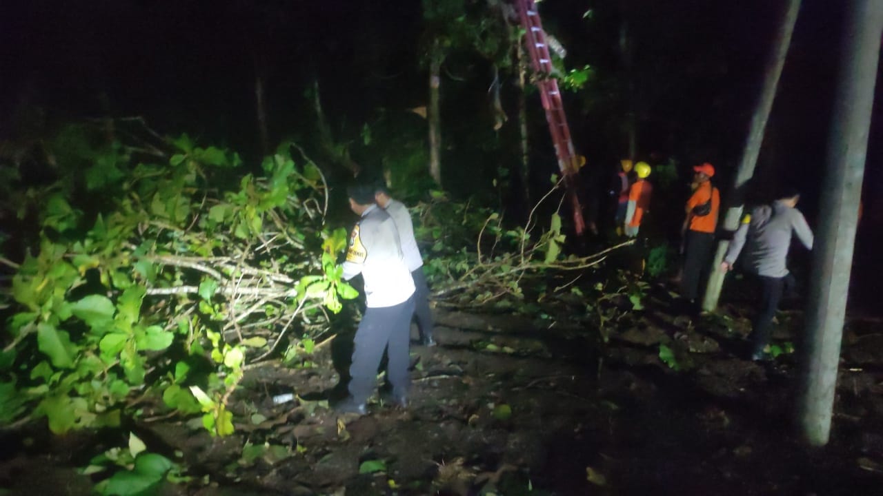 Mendapat laporan dari masyarakat, petugas Polsek Karanganyar segera menuju lokasi kejadian dan berkoordinasi dengan petugas PLN serta perangkat desa setempat. Dengan sigap, petugas melakukan pemotongan dan pembersihan pohon yang menghalangi jaringan listrik maupun akses jalan umum.
