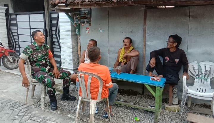 NGAWI, BUSERJATIM.COM GROUP  – Babinsa Koramil 0805/01 Ngawi Kota Sertu Aris Sukamto melaksanakan Komunikasi Sosial (Komsos) dengan warga masyarakat binaan yang sedang istirahat dalam melaksanakan kegiatan rutinitas sehari-hari di lingkungan kranggan Kelurahan Margomulyo Kecamatan Ngawi, Kamis (16/10/2025).