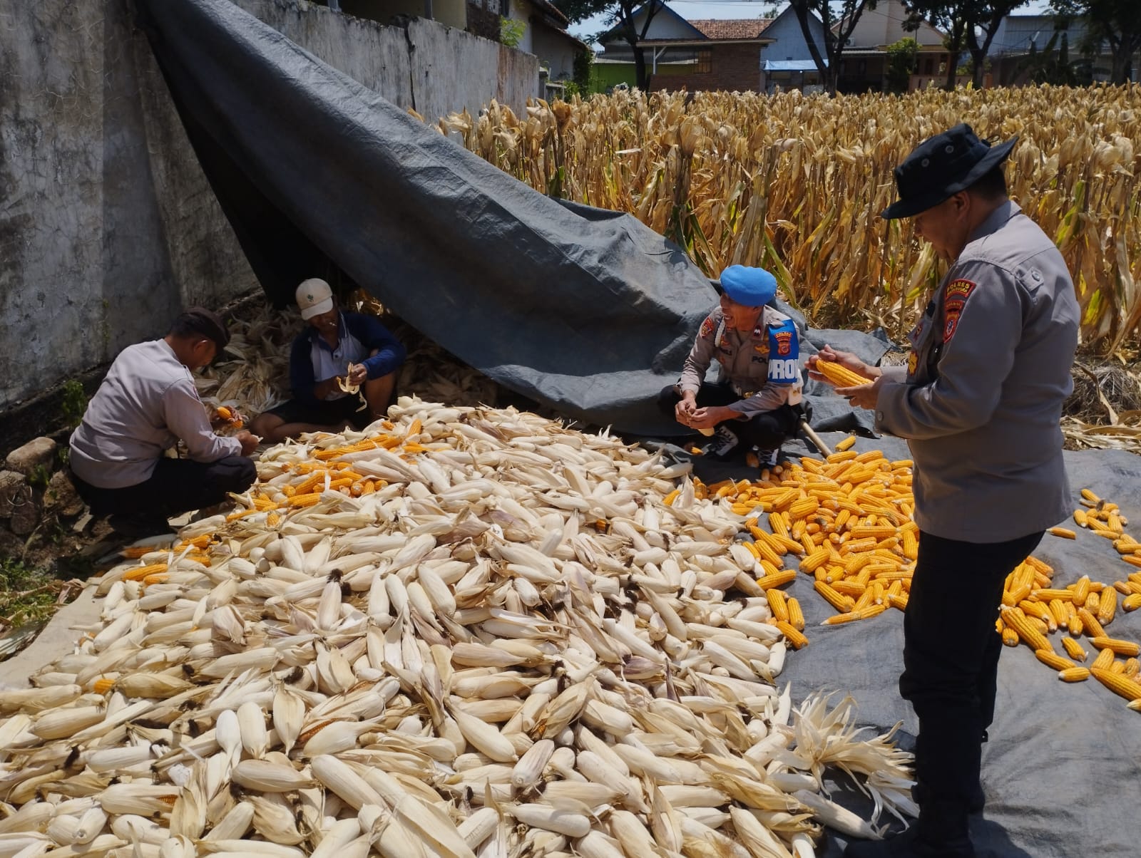 Majalengka, Kapolsek Jatiwangi Polres Majalengka AKP Rudy Djunardi, bersama Ps Panit Propam dan Bhabinkamtibmas Desa Andir Bripka Anson, melaksanakan pengecekan hasil panen jagung milik petani di Desa Andir, Kecamatan Jatiwangi, Kabupaten Majalengka pada Kamis (16/10/2025) pukul 10.00 Wib.