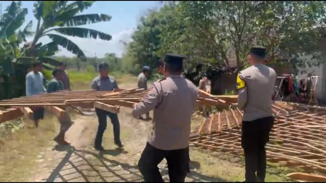 Kapolsek Karanganyar Iptu Supriyanto, S.H., bersama anggotanya, menyalurkan bantuan sembako kepada korban rumah roboh akibat hujan deras disertai angin puting beliung yang terjadi pada Rabu sore (15/10/2025) di wilayah Kecamatan Karanganyar, Kabupaten Ngawi.