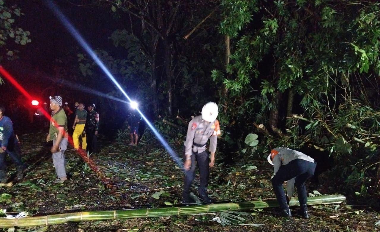 Hujan deras dari sore yang melanda wilayah Kecamatan Tanjungkerta, Kabupaten Sumedang, mengakibatkan banyak pohon bambu tumbang dan menutupi badan jalan di Desa Cipanas. Akibat kejadian tersebut, arus lalu lintas di lokasi sempat terhenti total karena kendaraan tidak dapat melintas, Sabtu (1/11/2025)