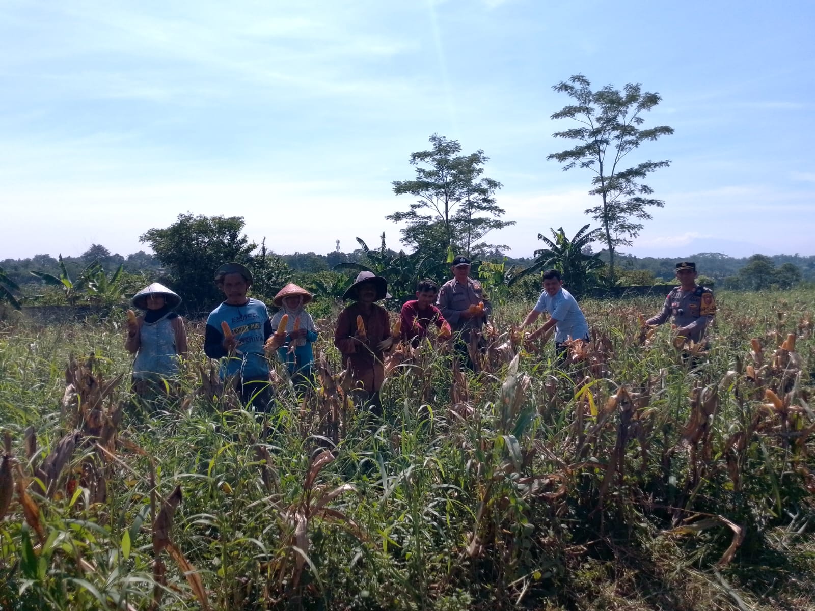 Polsek Rumpin Polres Bogor Bersama Poktan Tunas Muda Tarogong Laksanakan Panen Jagung Hibrida di Desa Mekarsari