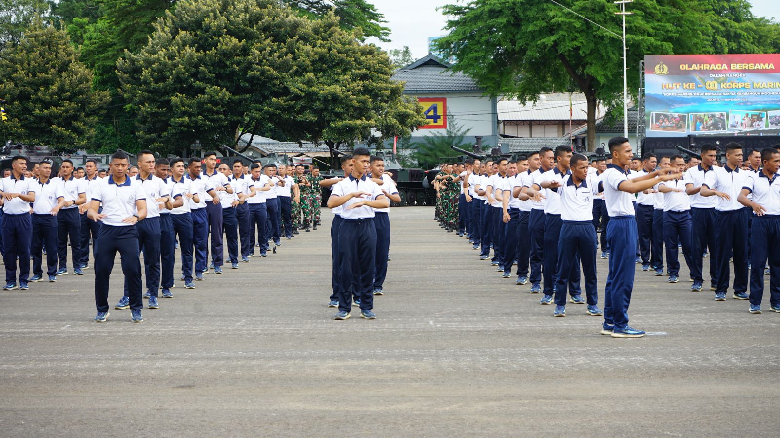 JAKARTA, BUSERJATIM.COM GROUP – Dalam rangka memeriahkan peringatan Hari Ulang Tahun ke-80 Korps Marinir Tahun 2025, prajurit Yonif 2 Marinir mengikuti kegiatan olahraga bersama Kepala Staf Angkatan Laut Laksamana TNI Muhammad Ali yang digelar dengan penuh semangat dan antusiasme tinggi di Lapangan Apel Ksatrian Marinir Hartono, Cilandak, Jakarta Selatan, Jumat (14/11/2025).