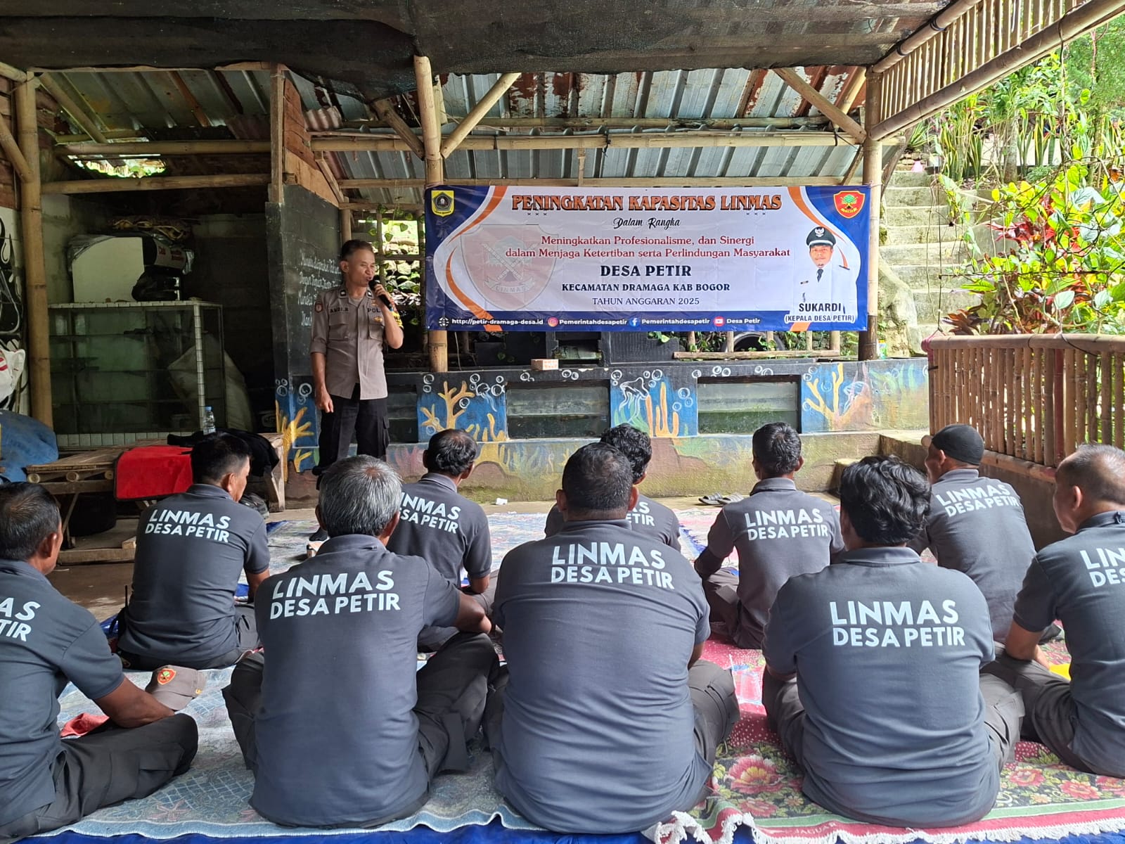 Bogor – Bhabinkamtibmas Polsek Dramaga Polres Bogor Polda Jabar Aiptu Andi Riswandi Memberikan Pengarahan Kepada Linmas Dalam Rangka Peningkatan Kapasitas Linmas Desa Petir, sekaligus Kegiatan sambang ini akan menjadi rutinitas untuk mendekatkan diri dengan masyarakat dan deteksi dini di wilkum Polsek Dramaga hari Selasa (25/11/2025).