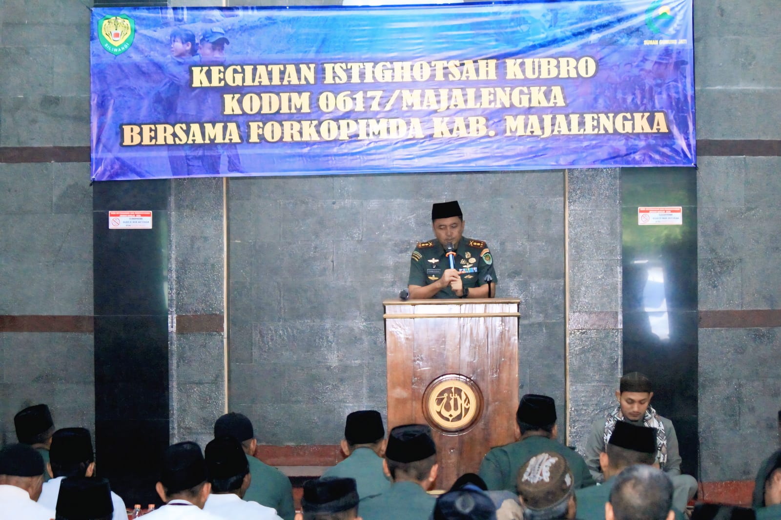 Dalam sambutannya, Dandim 0617/Majalengka, Letkol Inf Fahmi Guruh Rahayu, menyampaikan bahwa kegiatan istighosah merupakan momentum penting untuk memperkuat keimanan sekaligus bentuk kepedulian terhadap saudara sebangsa yang mengalami bencana.