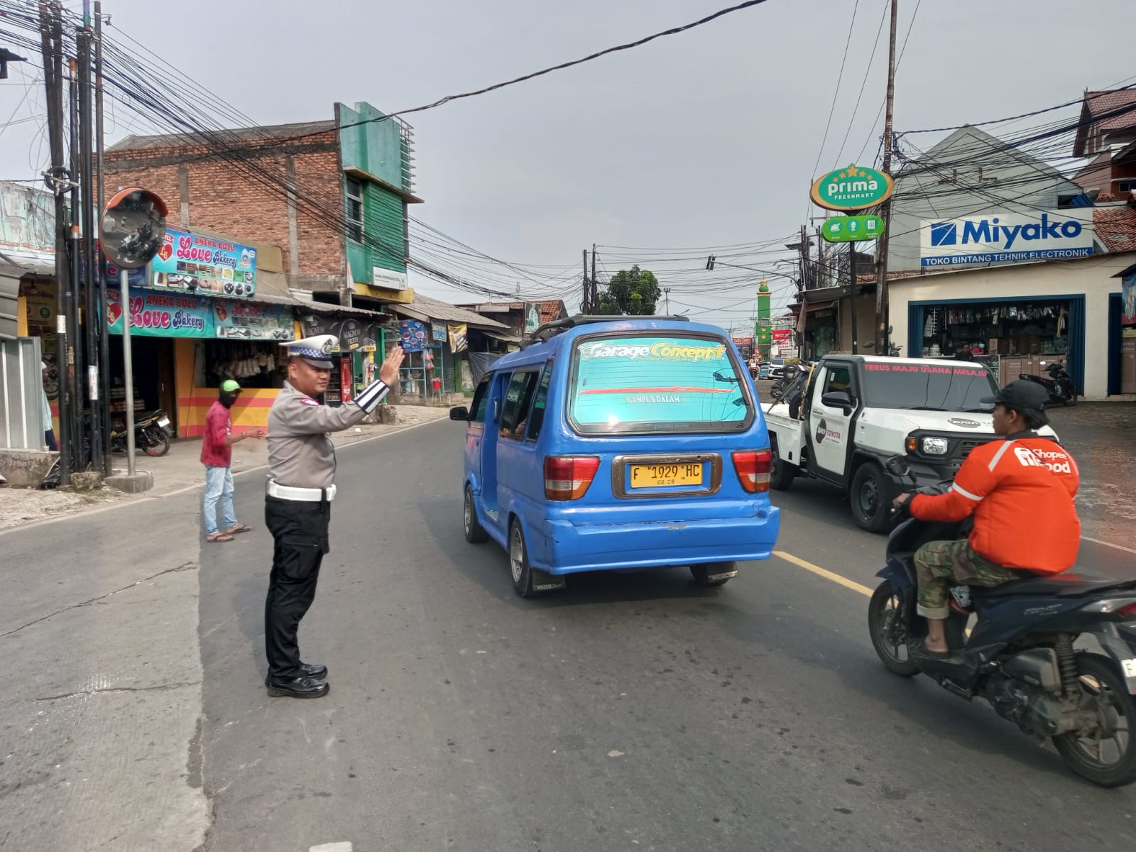 Anggota Lantas Polsek Ciampea Polres Bogor membantu masyarakat mengatur lalulintas dan ketika hendak menyebrang jalan, petugas juga melakukan pengaturan pengendara kendaraan bermotor agar terciptanya kamseltibcarlantas.