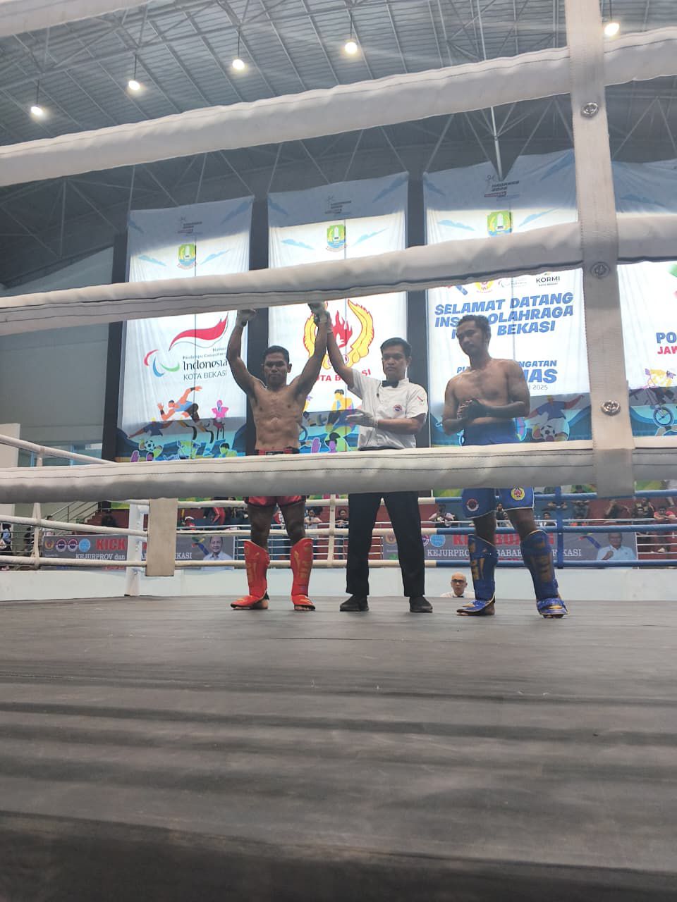 JAKARTA, BUSERJATIM.COM GROUP (15/12/25) – Prajurit Batalyon Infanteri 2 Marinir, Praka Marinir Erwin Simangunsong, kembali mengharumkan nama satuan dengan meraih Juara 1 dan berhak atas medali emas pada pertandingan Kick Boxing kategori Low Kick 63,5 kg babak kualifikasi Pekan Olahraga Provinsi (Porprov) Jawa Barat. Kejuaraan tersebut dilaksanakan di Stadion Patriot GOR Bangyang, Kota Bekasi, Jawa Barat tanggal 12 s/d 14 Desember 2025.