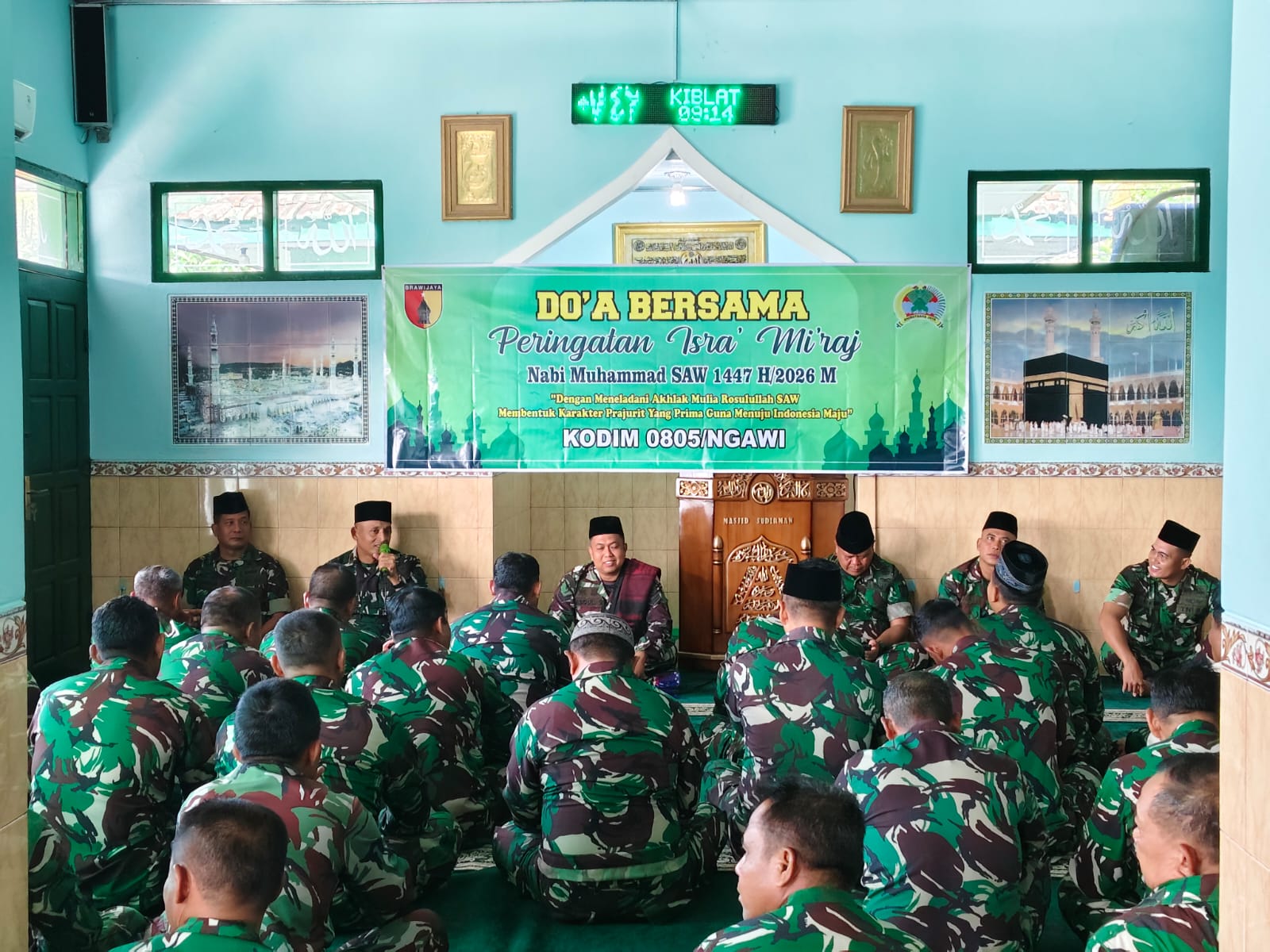 Kegiatan keagamaan tersebut mengusung tema “Dengan Meneladani Akhlak Mulia Nabi Muhammad SAW, Membentuk Karakter Prajurit yang Prima Guna Menuju Indonesia Maju”. Peringatan Isra Mi’raj ini diikuti oleh sekitar 150 peserta yang terdiri dari prajurit TNI dan PNS Kodim 0805/Ngawi.