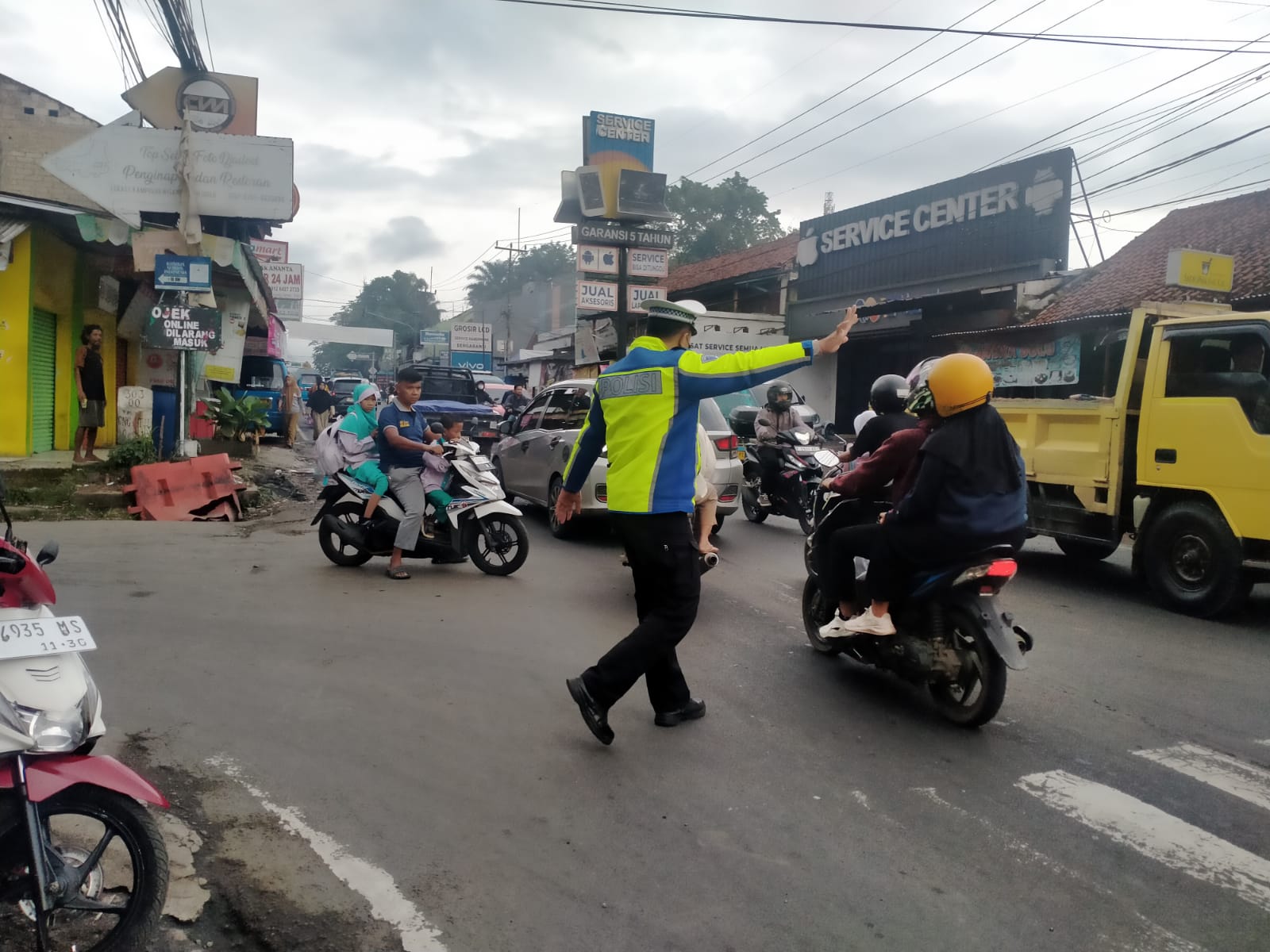 Anggota Lantas Polsek Ciampea Polres Bogor membantu masyarakat mengatur lalulintas dan ketika hendak menyebrang jalan, petugas juga melakukan pengaturan pengendara kendaraan bermotor agar terciptanya kamseltibcarlantas.