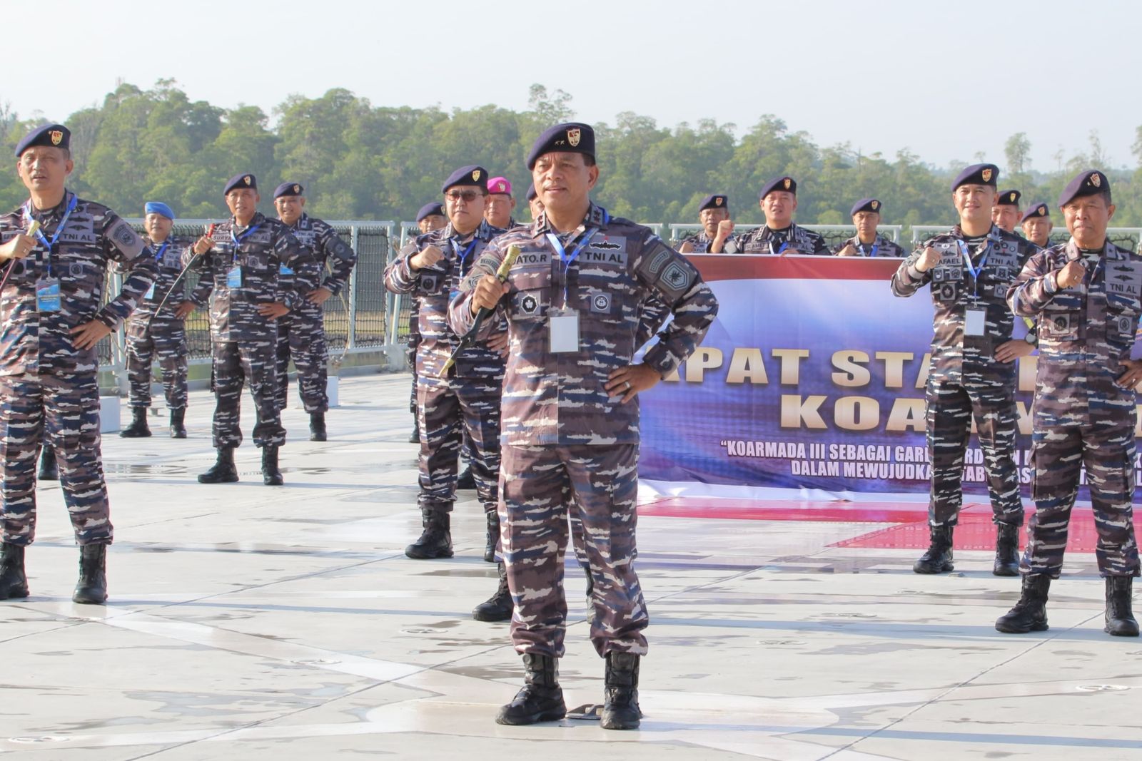 Mengakhiri amanatnya, Panglima Armada III secara resmi membuka RASKO 2026 dan menekankan kepada seluruh jajaran Armada III agar melaksanakan setiap kebijakan dan program kerja secara disiplin, solid, dan berorientasi hasil demi terwujudnya Armada III yang siap operasional dan unggul dalam menjaga kedaulatan NKRI di wilayah Indonesia Timur.