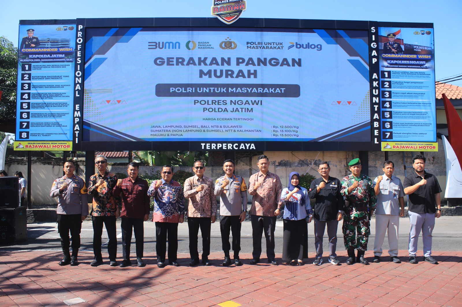 Kapolres Ngawi AKBP Prayoga Angga Widyatama menyampaikan bahwa kegiatan Gerakan Pangan Murah ini merupakan bentuk kepedulian Polri bersama pemerintah dalam membantu masyarakat memenuhi kebutuhan pokok, terutama di bulan Ramadan dan menjelang Idul Fitri.