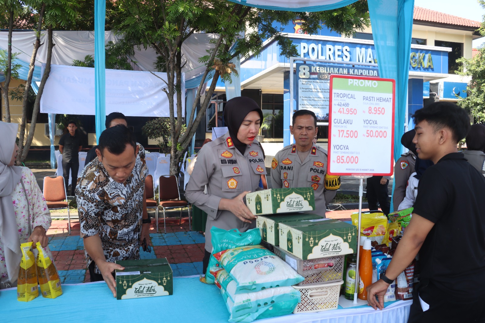 “Gerakan Pangan Murah ini merupakan wujud nyata kepedulian Polri hadir di tengah masyarakat. Kami ingin memastikan bahwa stok pangan tersedia dan harganya tetap stabil sehingga masyarakat dapat menyambut hari raya dengan tenang dan nyaman tanpa terbebani harga kebutuhan pokok yang melonjak,” ujar AKBP Rita Suwadi.