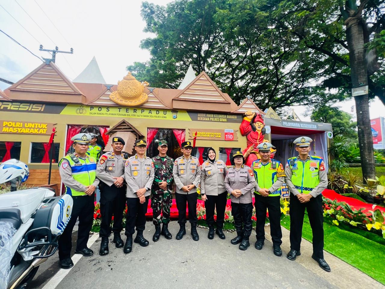 Setibanya di lokasi, rombongan disambut oleh jajaran Polres Gowa, di antaranya Kasat Samapta, Kasat Lantas, serta personel yang tengah bertugas. Tim kemudian melakukan pemeriksaan menyeluruh, meliputi kesiapan personel, kelengkapan sarana dan prasarana, hingga sistem pelayanan publik yang diterapkan di Pos Terpadu.