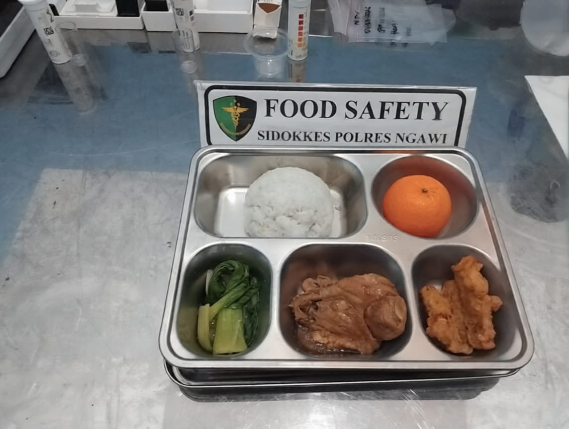 Ngawi – Pemeriksaan keamanan pangan (food safety) terhadap menu Makan Bergizi Gratis (MBG) di SPPG Polri Polres Ngawi 3, Kelurahan Ketanggi, Kecamatan/Kabupaten Ngawi, Selasa (7/4/2026), menunjukkan hasil yang aman dan layak dikonsumsi.