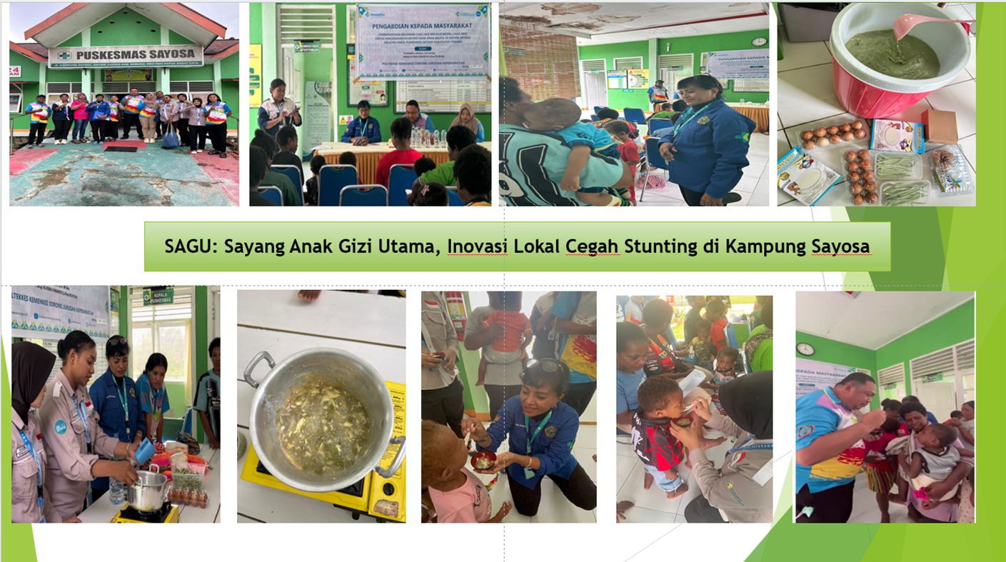 SAGU yang merupakan akronim dari “Sayang Anak Gizi Utama” diperkenalkan bukan sekadar sebagai bahan makanan tradisional, tetapi sebagai simbol pentingnya pemenuhan gizi seimbang bagi anak sejak dini. Inovasi ini berangkat dari hasil penelitian sebelumnya yang menunjukkan bahwa wilayah Sayosa masih menghadapi tantangan stunting, sehingga diperlukan pendekatan yang relevan dengan budaya dan sumber daya setempat.